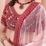 The Rosy Bridal Lehenga in stunning red is beautifully adorned with intricate hand embroidery, designed to reflect a regal essence. Paired with a delicate dupatta and a waist belt, this ensemble delivers a complete bridal look that is both glamorous and elegant. Its four components harmoniously complement each other to create a cohesive outfit that truly stands out, celebrating the spirit of traditional beauty.